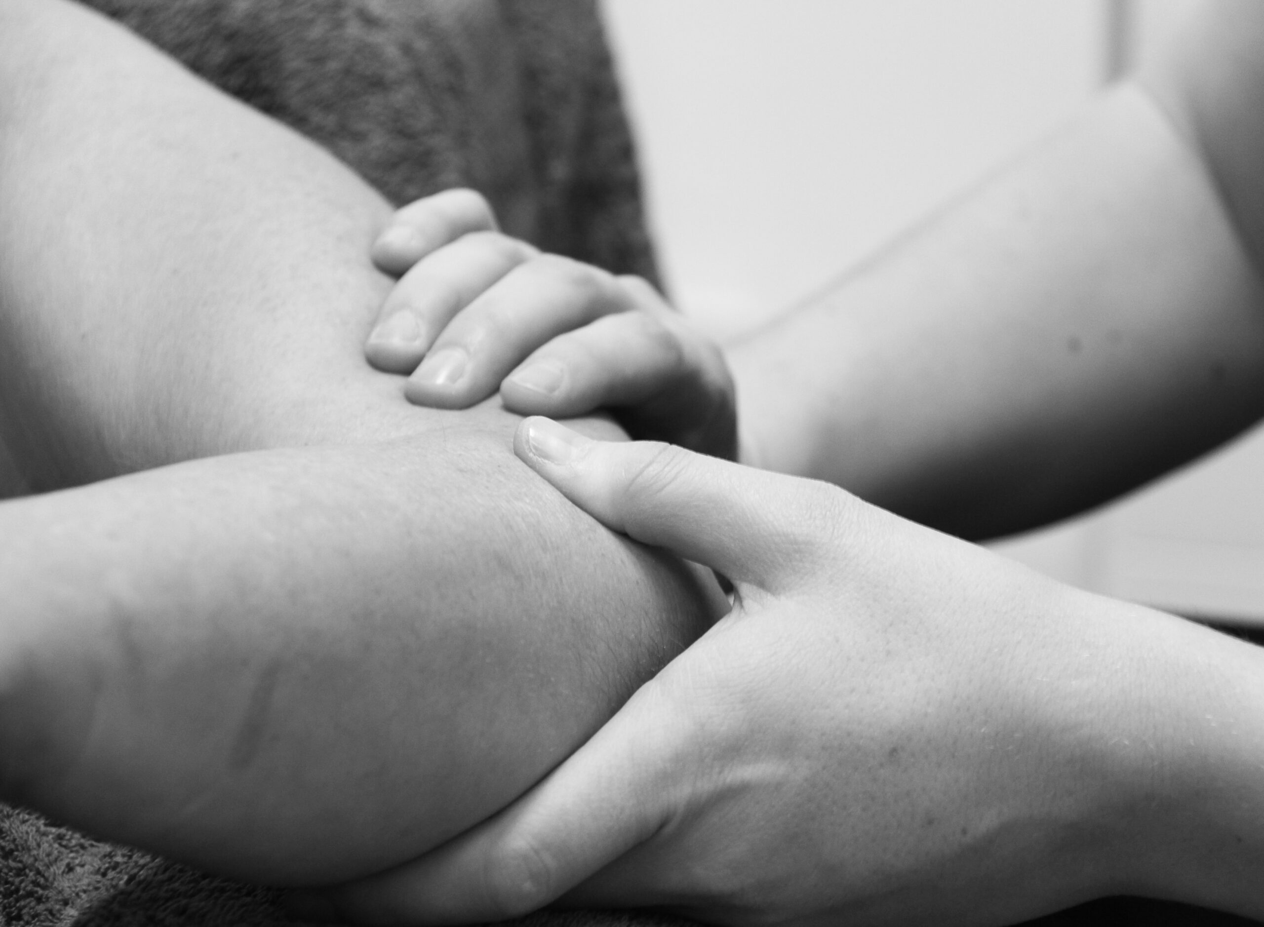grayscale photo of babys feet
